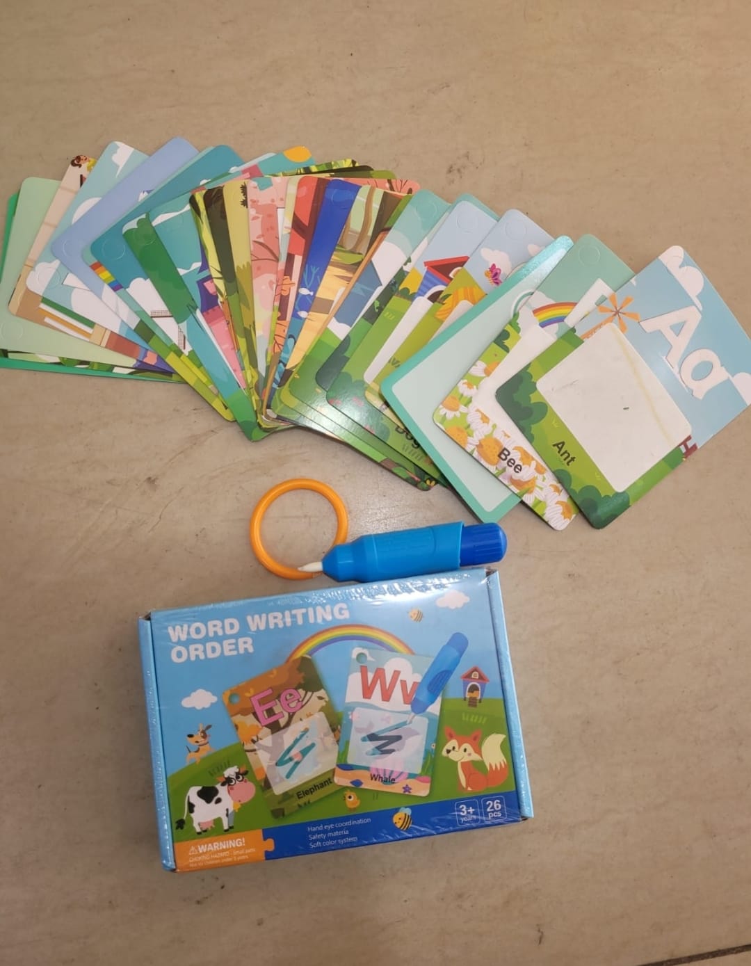 Mis primeras Letras es un divertido juego de tarjetas diseñado para que los niños aprendan el abecedario de forma interactiva. Cada tarjeta muestra una letra con un espacio en blanco debajo, donde los pequeños pueden practicar escribiéndola. Ideal para estimular la escritura y el reconocimiento de letras mientras juegan y se divierten.