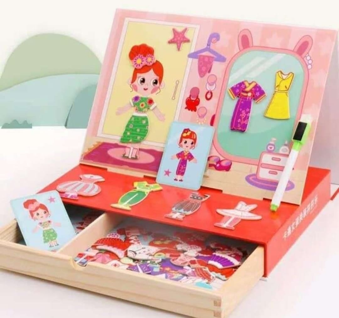 Descubre Moda Magnética, el juguete de muñeca retro que te invita a crear infinitos estilos. Viste a tu muñeca con piezas magnéticas fáciles de cambiar y combina prendas para darle un look único cada día. Perfecto para estimular la creatividad y la diversión sin límites. ¡Deja volar tu imaginación y dale vida a tu muñeca con Moda Magnética!