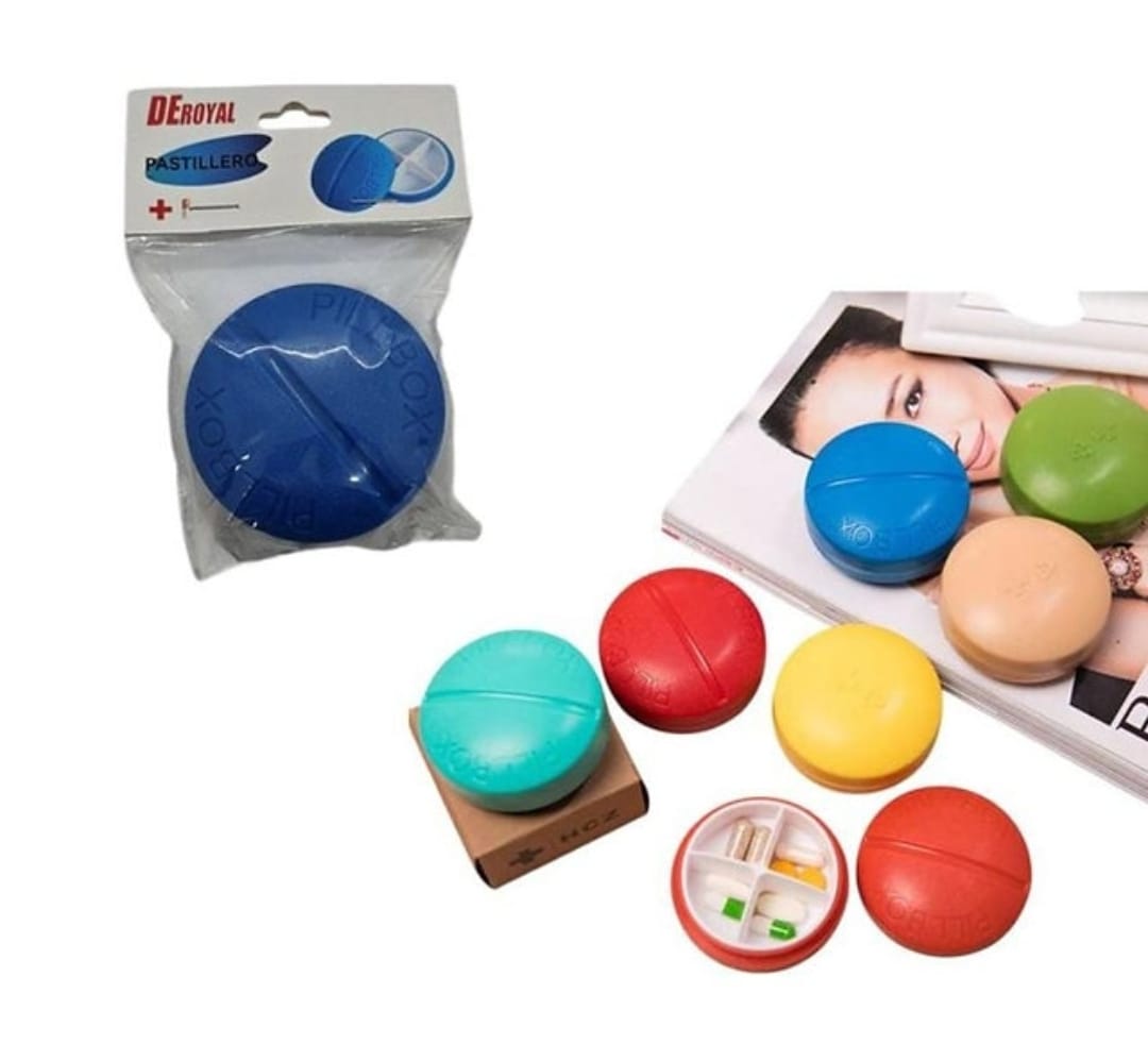 Organiza tus medicamentos con estilo y alegría gracias a este pastillero redondo multicolor. Su diseño compacto y vibrante facilita llevar tus pastillas a donde quieras, haciendo que cuidar tu salud sea más divertido y práctico. Ideal para mantener todo en orden y a la mano.