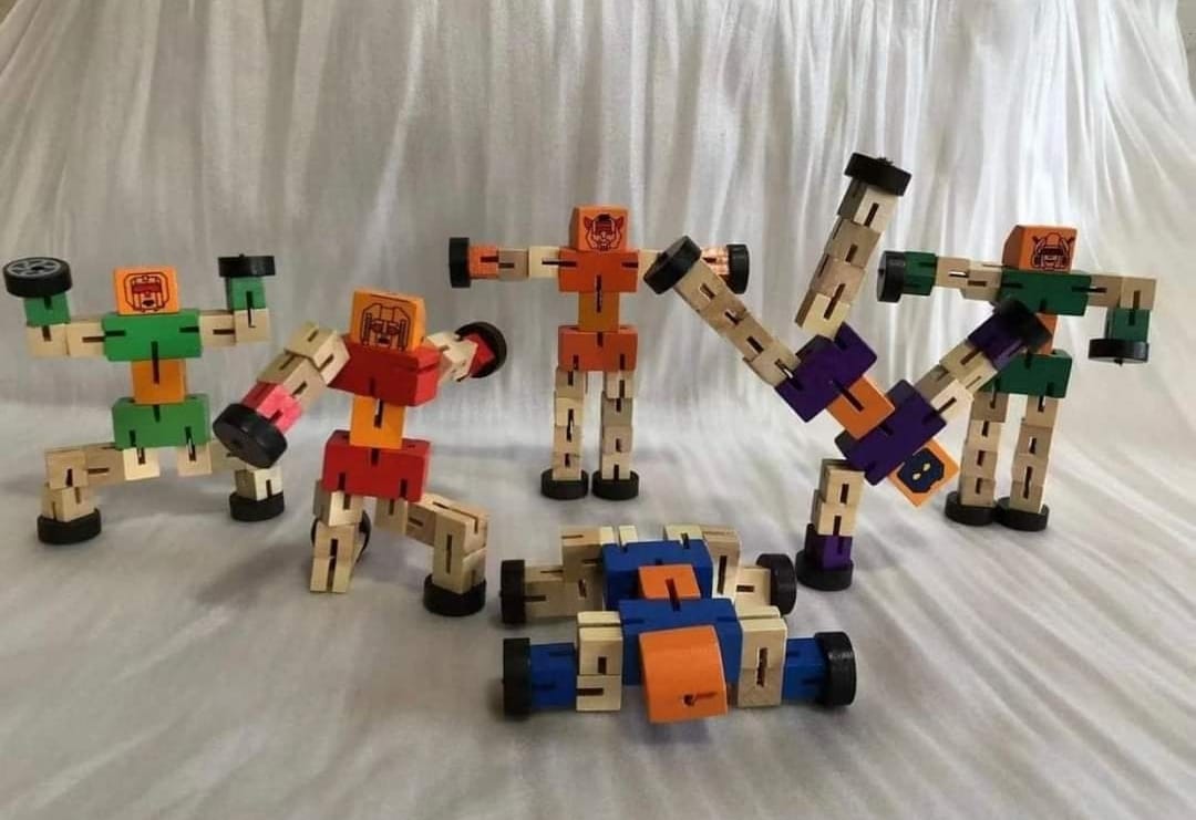 Descubre Retrobot, un encantador robot de madera inspirado en los clásicos de los años 80. Sus partes están unidas con elásticos que permiten movimientos flexibles y poses divertidas, ¡perfecto para despertar la imaginación y jugar sin límites! o si buscan un regalo para el niño grande de la casa
