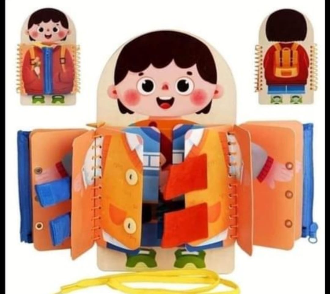 Este divertido juguete presenta la figura de un niño con diferentes prendas, cada una con un tipo de broche distinto. Perfecto para que los más pequeños aprendan a vestirse mientras juegan, desarrollando su motricidad y autonomía de forma entretenida. ¡Una manera lúdica y práctica de descubrir el mundo de la ropa!